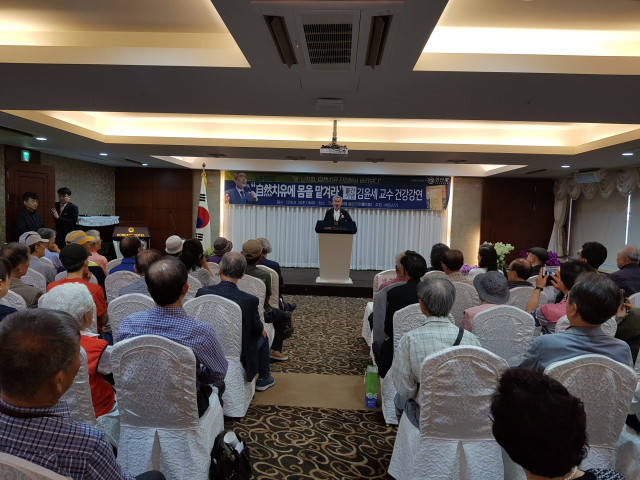 | ▲ 김윤세 인산가 회장(전주대 교수)의 ‘노자 도덕경-자연치유에 몸을 맡겨라’ 출간기념 건강 특별 강연이 13일 오후 4시 코리아나호텔 7층 글로리아홀에서 400여명의 청중이 몰린 가운데 2시간 동안 진행됐다. | ||