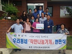 올해 들어 벌써 착한나눔가정 6가정이 협약을 체결한데 이어 지난 18일 동면 석산마을 내 청둥오리전문점 정자나무가 착한나눔가게 26호점으로 나눔협약을 체결하고 현판전달식을 가졌다.