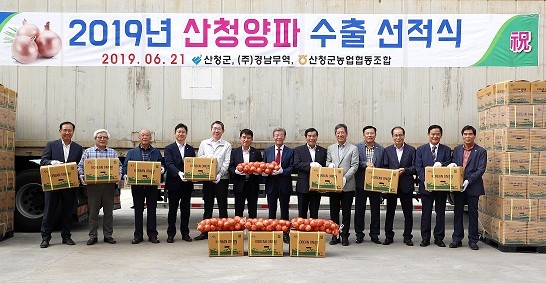 산청군과 산청군농협은 21일 단성면 농산물산지유통센터에서 2019년산 양파의 첫 수출 선적식을 가졌다.