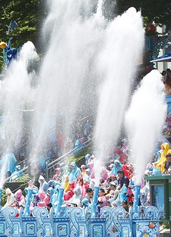 수도권기상청이 24일 오전 10시부터 가평·광주에 폭염주의보를 발효한다. 이 지역의 기온은 현재 가평 26.1도, 광주 25.2도이지만 24일에는 33도까지 오를 것으로 기상청은 내다보고 있다. 사진은 23일 오후 경기도 용인시 에버랜드에서 열리고 있는 여름 축제 '썸머 워터 펀'을 찾은 시민들이 시원한 물줄기를 맞으며 더위를 식히고 있다.