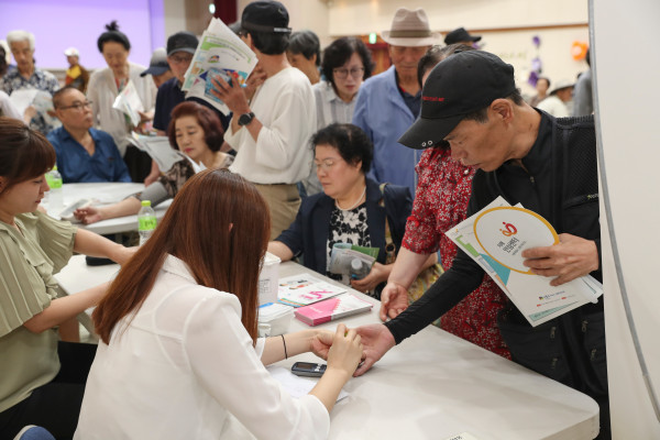 서울 성동구는 25일 생계·의료급여 신규 수급자 300명을 대상으로 ‘의료복지 박람회’를 개최했다. 이날 행사장 한 편에는 행사 참여자를 대상으로 혈압·혈당 점검 등의 건강검진이 진행됐다. 사진은 행사 참여자가 건강검진을 받는 모습. (사진제공=성동구청)