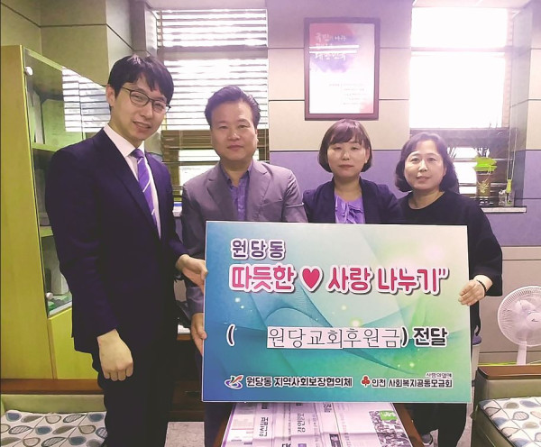 인천시 서구 원당교회, 행정복지센터에 후원금 기탁