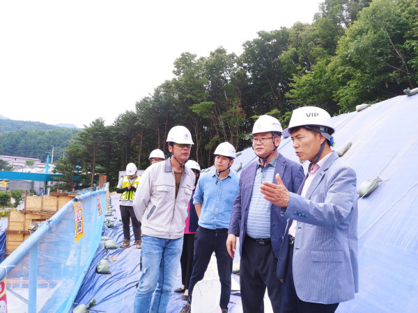 경기 남양주시가 26일 지역내 복지관 건설현장 및 복지시설을 방문해 자연재난 대비상태 및 혹서기 냉방기 상태 등 안전 및 위생과 관련된 사항을 점검했다. 사진은 이군희 복지국장이 복지관 건설현장을 둘러보며 공사관계자에게 안전을 당부하는 모습. (사진제공=남양주시청)
