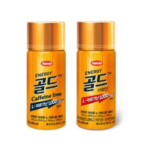 한미약품의 에너지골드는 약국에서만 유통되는 프리미엄 드링크제로, 카페인 함유 여부에 따라 2종으로 출시됐다.