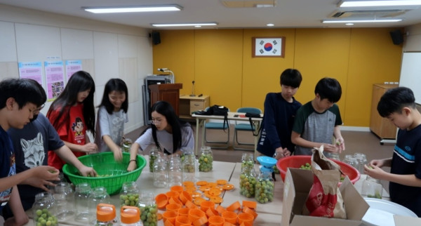 서울 서대문구 홍제1동 '손으로 만드는 이웃사랑'이라는 의미를 담고 있는 봉사활동 동아리 '수애(手愛)'의 청소년들이 최근 직접 만든 매실청을 지역내 홀몸노인 30명에게 전달했다. 사진은 매실청을 직접 만드는 학생들의 모습. (사진제공=서대문구청)