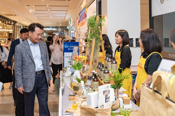 | ▲ 롯데백화점 팝업스토어를 찾은 김 구청장의 모습. | ||