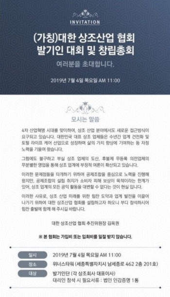 김옥권 대한 상조산업 협회 추진위원장은 발기인대회 초대글에서 “상조업계 문제점을 타개하고 업계의 공익 활동을 대변함으로써 대한민국 상조산업 미래를 위한 힘찬 도약과 업계 발전을 도모하기 위한 목적으로 대한 상조산업 협회를 발족시키고자 한다”고 전했다.
