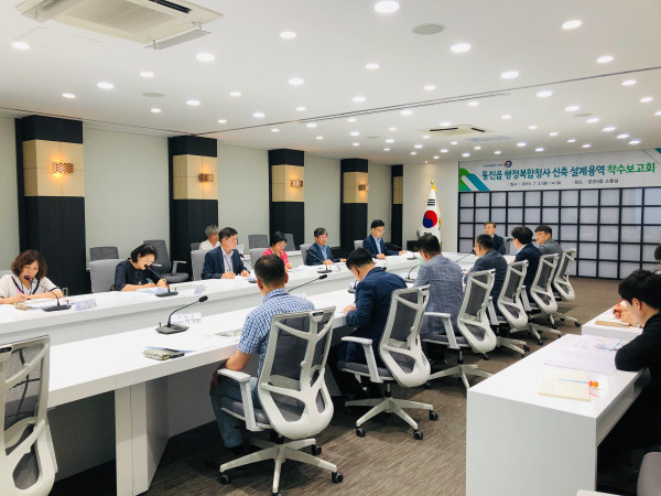 경기 김포시는 최근 소통실에서 통진읍행정복합청사 신축을 위한 설계용역 착수보고회를 개최했다. 통진읍행정복합청사는 연면적 1만2628㎡에 지하 2층~지상 5층 규모로 건축될 예정이다. 사진은 이날 착수보고회가 진행되고 있는 모습. (사진제공=김포시청)