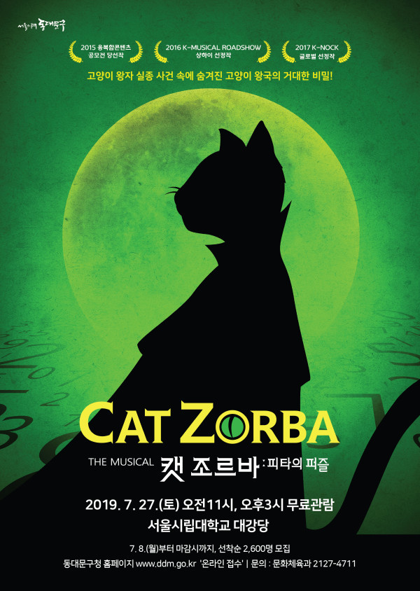 구는 주민들이 다양한 문화생활을 누릴 수 있도록 하고자 가족뮤지컬 ‘캣 조르바(CAT ZORBA):피타의 퍼즐’을 오는 27일, 오전 11시와 오후 3시 두 차례에 걸쳐 서울시립대학교 대강당에서 공연한다.