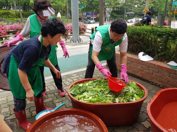 새마을부녀회원들과 열무김치, 장조림 등 소외계층에 전달할 밑반찬 만들어