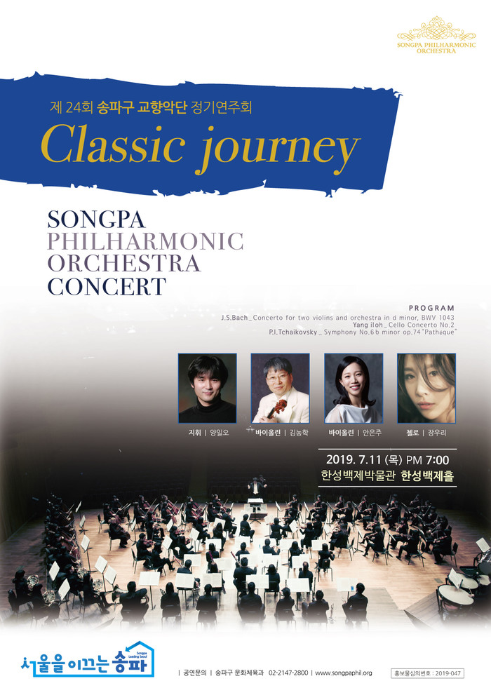 박성수 구청장은 “색다르고 참신한 양일오 지휘자의 기획력과 유려한 지휘, 송파구립교향악단의 실력 있는 연주를 기대한다”며 “많은 분들이 한여름밤 클래식 연주의 아름답고 웅장한 하모니에 빠져보시길 바란다”고 전했다.