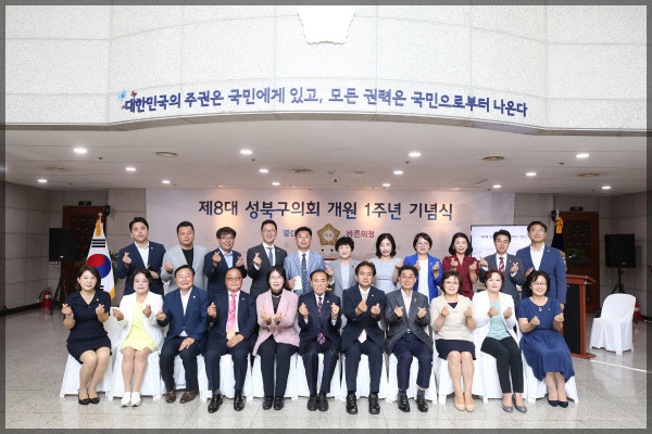 [시민일보=고수현 기자] 서울 성북구의회(의장 임태근)는 8일 구의회 1층 로비에서 '제8대 성북구의회 개원 1주년 기념식'을 개최했다.