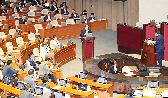 이낙연 국무총리가 10일 오후 국회 본회의장에서 열린 경제 분야 대정부질문에서 더불어민주당 백재현 의원의 질의에 답변하고 있다.