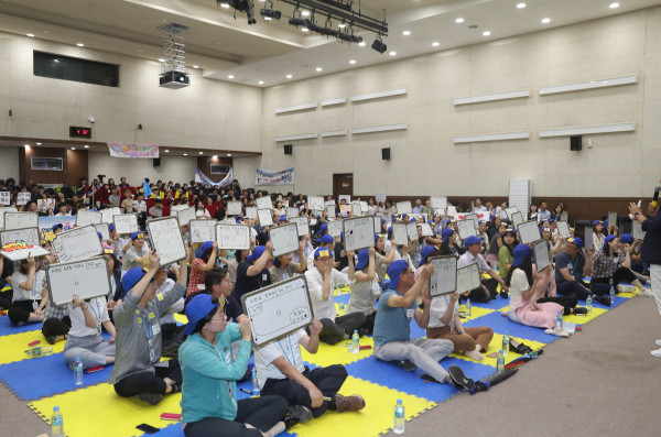 서울 관악구는 10일 구청 대강당에서 소속 공무원 400여명이 참여한 가운데 ‘도전! 청렴 골든벨 퀴즈대회’를 성공적으로 개최했다. 이날 참여자들은 청탁금지법과 청렴에 관한 퀴즈를 풀었다. 사진은 골든벨이 진행되고 있는 모습. (사진제공=관악구청)