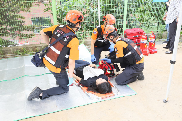 서울 은평소방서는 10일 은평구 갈현로 소재 은평대영학교를 방문해 198명의 학생과 교사들을 대상으로 복합재난 발생 상황을 가정해 재난 안전 대응훈련을 실시했다. 사진은 소방관들이 응급처지 교육을 진행하고 있는 모습. (사진제공=은평소방서)