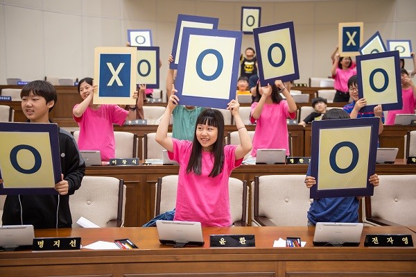 또한, 모의의회를 개회하여 정책이 결정되기 위해 거치는 합리적인 의사결정 과정을 체험하고, OX퀴즈를 풀며 지방자치제도를 쉽고 재미있게 접할 수 있는 시간을 가졌다.