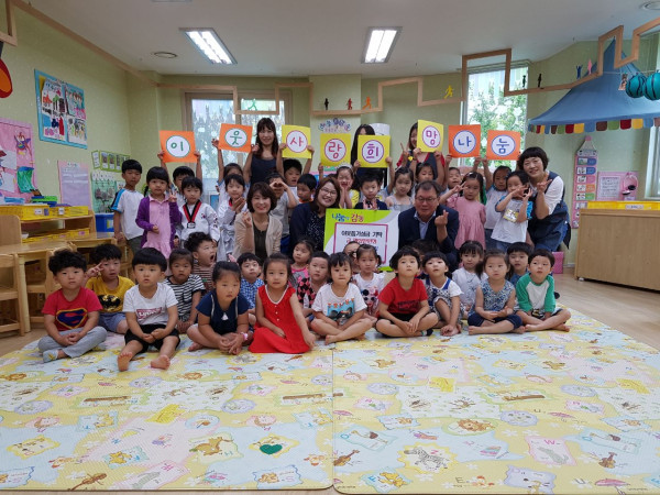 경기 김포시 구래동 호수어린이집은 최근 어려운 이웃을 위해 써달라며 이웃돕기성금 80만원을 기탁했다. 이날 기탁된 성금은 '어려운 이웃과 희망을 나눈다'는 취지로 열린 바자회를 통해 마련된 것이다. 사진은 어린이들이 기념촬영을 하는 모습. (사진제공=김포시청)