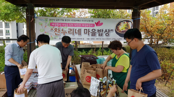 서울 성동구 금호1가동 주민자치회는 최근 초복을 맞아 무더위에 돌봄이 필요한 장애인가구 등에 삼계탕 100그릇을 전달했다. 이날 위원 10여명은 삼계탕과 김치를 만들어 주민들에게 직접 배달했다. 사진은 위원들이 삼계탕을 포장하고 있는 모습. (사진제공=성동구청)