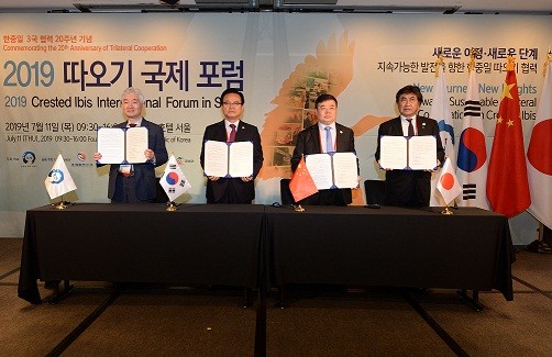 특히 이번 포럼에서는 한정우 창녕군수를 비롯해, 장 젠궈 중국 한중시 부시장, 미우라 모토히로 일본 사도시장이 참여하였으며, 따오기 관련 정보 및 인적 교류, 생태관광을 위한 상호협력 등 3국 지방도시간 협력 강화를 위한 MOU를 체결했다.