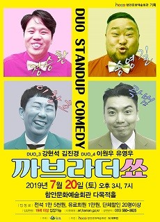 TV에서는 볼 수 없었던 적나라한 코미디연기로 관객들에게 꾸준히 인정받고 있는 ‘까브라더쇼’는 홍대를 벗어나 관객들과 더욱 가까이 만나기 위해 이번에 함안을 찾아 상상 이상의 재미와 감동, 속 시원한 웃음을 선보일 예정이다.