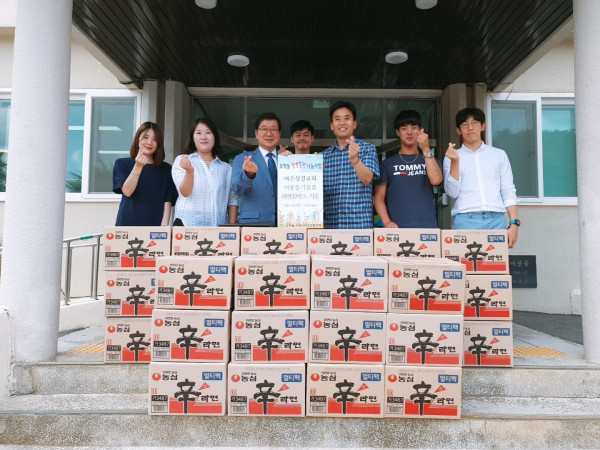 경기 여주성결교회가 최근 환경주무관 휴게실, 오학동 주민센터, 중앙동 금사면 등을 방문해, 직원들과 어려운 이웃들을 위한 라면을 전달했다. 여주성결교회는 매년 지역내 어려운 이웃을 위해 생필품을 지원해오고 있다. 사진은 기념촬영을 하는 모습. (사진제공=여주시청)