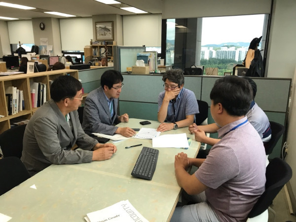 충남 예산군은 최근 문화재청을 찾아 오는 2020년도 황새공원 관리 및 황새 사육, 연구를 위한 국비지원을 건의했다. 이날 군 문화관광과장 등 관계자들은 문화재청에 국비 6억300만원 지원을 요청했다. 사진은 관계자들의 회의 진행 모습. (사진제공=예산군청)
