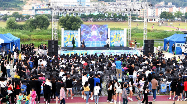 경기 광주시는 최근 청석공원에서 ‘불량콘서트-워터스토리 물잔치’를 성료했다. 이날 시민군과 악당으로 나눠 물총싸움이 진행됐으며, 무대에서는 시민들의 댄스 및 워터 난타 공연 등이 펼쳐졌다. 사진은 무대에서 공연이 진행되고 있는 모습. (사진제공=광주시청)