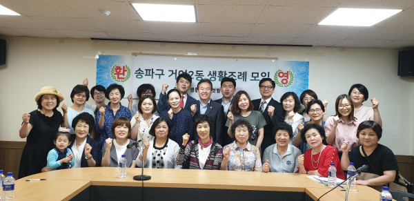 | ▲ '송파구 거여2동 생활조례 모임' 종료 후 기념촬영을 하고 있는 참여자들. (사진제공=송파구의회) | ||