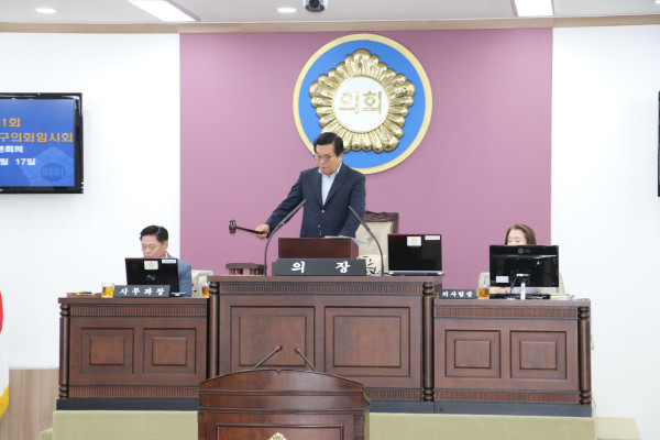 | ▲ 제251회 임시회 제2차 본회의에서 조영훈 의장이 정회를 선언하고 있다.(사진제공=중구의회) | ||