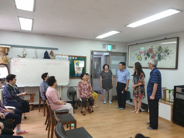 경기 수원시 장안구 정자3동 오영석 신임 동장과 이해련 주민자치위원장 등은 지난 16~17일 양일간 무더위 쉼터로 이용되는 지역내 경로당 20곳을 방문해 안부를 확인하고 경로당 현황과 애로사항 등을 청취하며 소통의 시간을 가졌다. 사진은 정자3동 관계자들이 노인들과 이야기를 나누는 모습. (사진제공=수원시청)