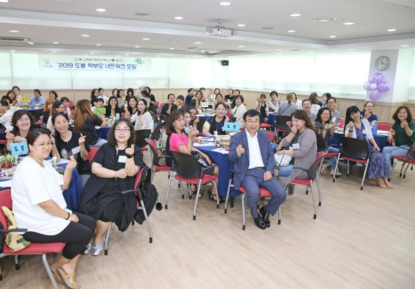서울 도봉구는 17일 평생학습관 대강의실에서 학부모 60여명이 참석한 가운데 ‘2019 도봉 학부모 네트워크 모임’을 개최했다. 이날 학부모 간 정보를 공유하고, 교육방향 등에 대한 의견을 나눴다. 사진은 기념촬영을 하는 모습. (사진제공=도봉구청)