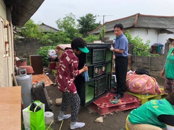 경기 여주시 점동면은 최근 도움이 손길이 필요한 지역내 노부부의 집수리에 나섰다. 이날 노후된 전선교체 등 전기설비, 화장실 정화조 설치, 도배·장판, 싱크대 설치 등 묵은 때를 청소하고 정비했다. 사진은 가구를 옮기는 모습. (사진제공=여주시청)