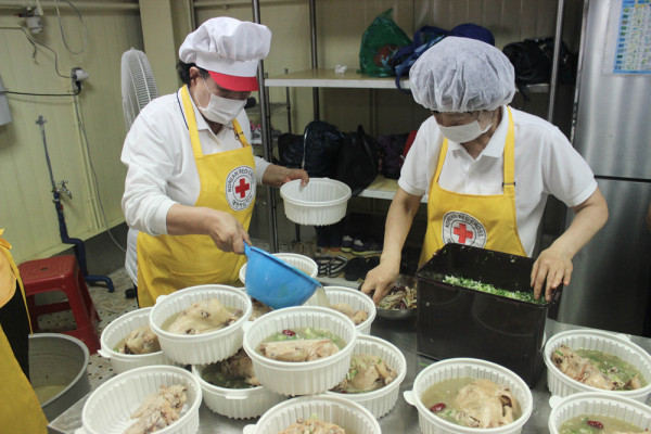 대한적십자사 봉사회 동작지구협의회는 지난 17일 서울 동작구청의 후원으로 대한적십자사 서울특별시지사 남부봉사관에서 '사랑의 삼계탕' 나눔 봉사활동을 진행했다. 사진은 삼계탕을 만들고 있는 봉사원들의 모습.(사진제공=대한적십자사 서울시지사)