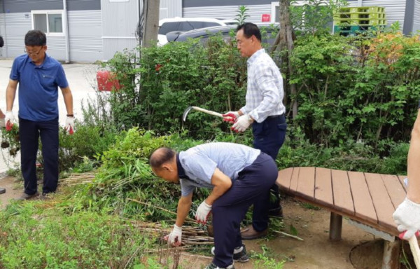 인천 계양구 계양3동 주민자치위원회는 최근 위원 및 동직원 등 30여명이 참여한 가운데 상야동과 하야동 일대 소공원 주변에서 '도시 녹화 정비'를 실시했다. 사진은 관계자들이 공원내 휴게공간 확충을 위해 잡풀을 제거하고 있는 모습. (사진제공=계양구청)