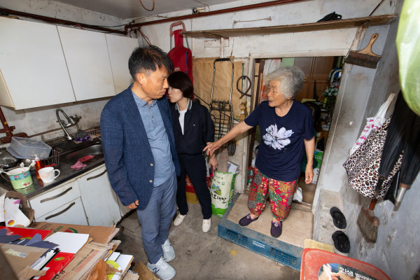 서울 은평구가 최근 지역내 홀몸노인, 만성질환자 등의 폭염 취약가구 방문점검을 실시했다. 사진은 한 홀몸노인의 집을 방문해 생활불편 등 애로사항을 듣고 있는 박종수 부구청장의 모습.(사진제공=은평구청)