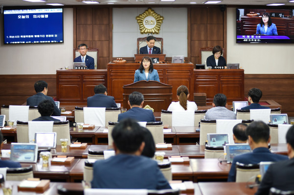 한편 의사일정에 앞서 박혜정 의원은 5분 발언을 통해 “태극기 사랑은 우리가 가장 손쉽게 실천할 수 있는 나라사랑의 첫걸음”이라며, "태극기를 올바르게 게양할 것과 훼손되지 않도록 관리해 줄 것"을 호소했다.