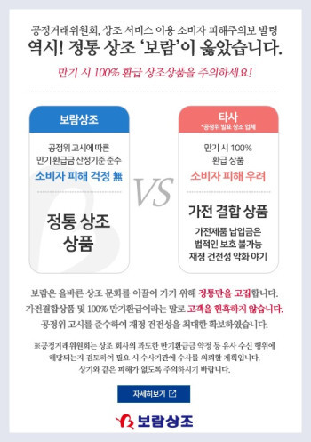 보람상조에 따르면 최근 일부 상조회사에서 가전 결합상품 마케팅뿐만 아니라 만기 100% 환급 조건을 무분별하게 내세워 왔다.
