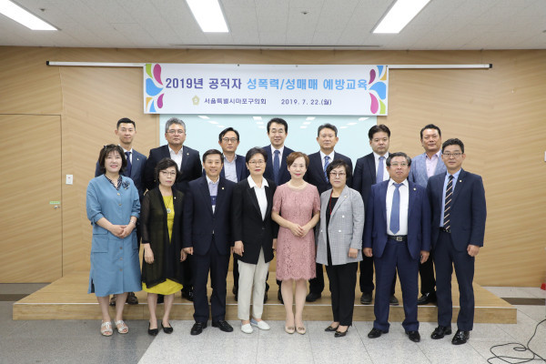 [시민일보=홍덕표 기자] 서울 마포구의회(의장 이필례)가 최근 구의회 다목적실에서 의원과 의회사무국 직원을 대상으로 '2019 공직자 성폭력·성희롱 예방교육'을 실시했다.