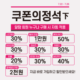 중복 할인 전용 쿠폰을 제외한 쿠폰은 함께 적용할 수 없으며, 신상품 및 일부 브랜드 상품에는 사용이 제한된다.