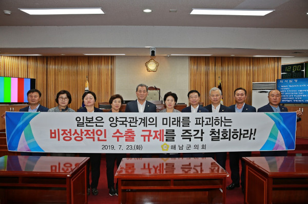 특히 군의회는 일본의 비정상적인 수출 규제를 규탄하고 일본에 양국관계의 미래를 파괴하는 이 같은 조치를 즉각 철회할 것을 촉구했다.