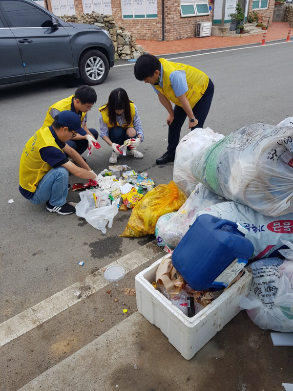 충남 아산시는 24일 깨끗하고 청결한 아산을 만들기 위한 시책의 일환으로 오전 5시30분부터 3시간 동안 '클린하우스 시설 점검 및 불법투기 집중단속의 날'을 운영했다. 사진은 단속반이 무단 투기된 쓰레기를 분류하는 모습. (사진제공=아산시청)