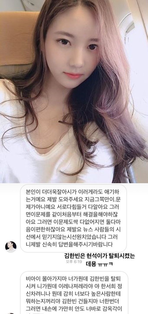 이에 한서희는 “비아이(본명 김한빈)는 양현석이 탈퇴시켰다”라는 글을 덧입혀 반박했다.