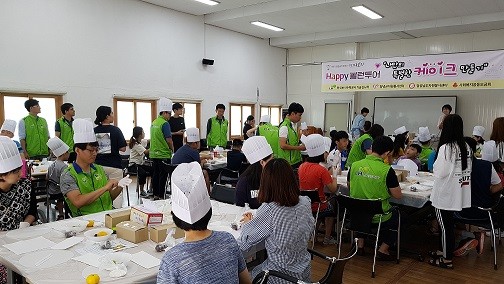 | ▲ 창녕군축산회관에서 진행된 ‘Happy Voluntour’ 케이크 만들기 모습. | ||