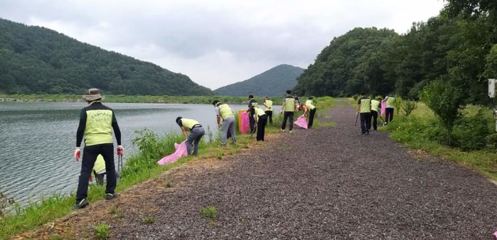농어촌공사 함안지사는 여항면사무소와 함께 26일 함안군 여항면 봉성저수지에서 환경정화 활동을 하였다.