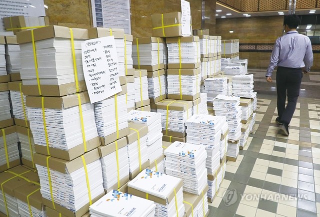 여야의 대치 속에 7월 임시국회 회기가 시작된 29일 오후 국회를 의안과 앞에 각 상임위원회의 정부 부처별 성과 및 결산보고서가 수북이 쌓여있다. 이날 국회는 추가경정예산(추경)안 처리의 확답을 요구하는 더불어민주당과 ‘원포인트 안보국회’를 주장하는 자유한국당과 바른미래당과의 입장이 팽팽히 맞서며 개회식조차 열지 못했다.