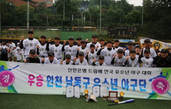 | ▲2019 신한은행드림배 전국유소년야구대회 우승을 차지한 인천 남동구유소년야구단이 기념촬영을 하고 있다. | ||