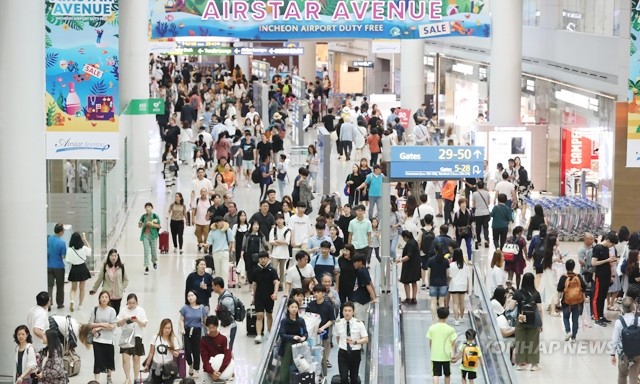 본격적인 휴가철을 맞아 30일 오전 인천국제공항 출국장 면세점 인근이 여행객들로 붐비고 있다.