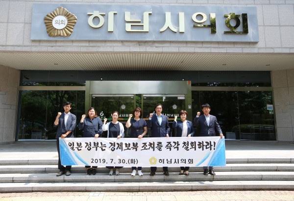 [하남=전용원 기자] 경기 하남시의회는 30일 일본 정부의 비상식적이고 일방적인 경제보복 조치를 규탄하는 성명을 발표하고 이를 즉시 철회할 것을 강력하게 촉구했다.