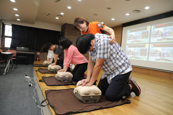서울 양천소방서는 30일 오후 초록우산어린이재단 직원 30여명을 대상으로 생명을 살리는 심폐소생술 교육을 실시했다. 사진은 참여자들이 심폐소생술 실습을 하고 있는 모습. (사진제공=양천소방서)