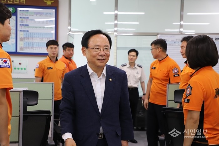 이주영 국회부의장은 폭염 속에서 30kg 이상의 방화복과 개인보호장비를 갖추고 현장활동을 하는 화재, 구조, 구급출동대원을 직접 만나 악수를 나누며 노고를 격려했다.